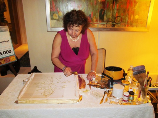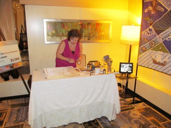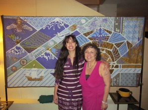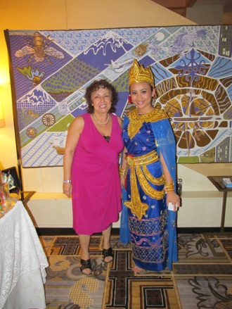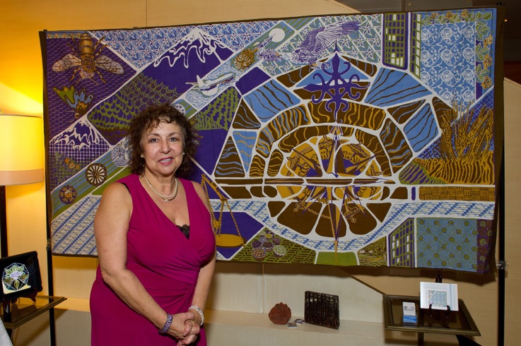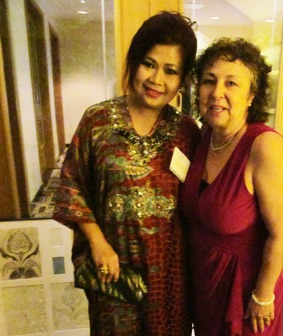(Right to Left): Zelda Kartika, 1st Secretary, Political Affairs; Joanne Gigliotti, Artist, here representing the Embassy in Batik;